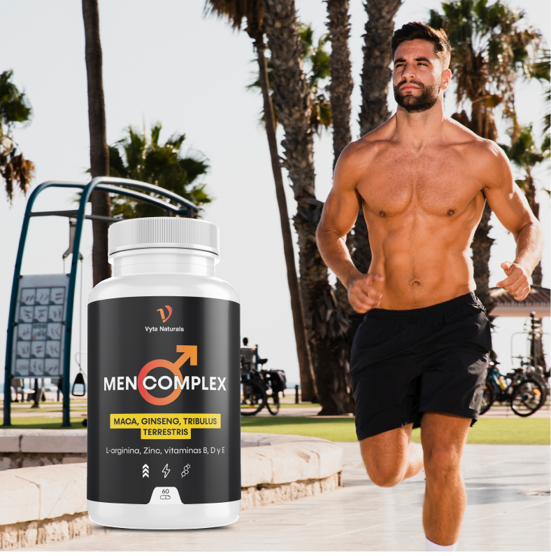 ¿Quieres sentirte con más energía y rendir mejor, tanto en el gimnasio como fuera de él? Vyta Naturals Men Complex está diseñado para hombres que desean mantener altos niveles de energía y un rendimiento fuerte. Con ingredientes naturales como maca, tribulus terrestris, ginseng rojo y l-arginina, te brinda ese impulso extra para superar entrenamientos intensos y mantener tu confianza donde más importa, ya sea que estés dándolo todo en el gimnasio o sintiéndote en tu mejor momento con tu pareja. Esta fórmula también apoya los niveles normales de testosterona, ayudándote a mantener tu fuerza, resistencia y vitalidad general.