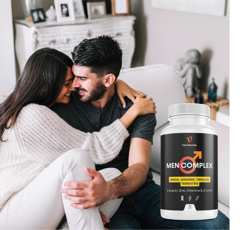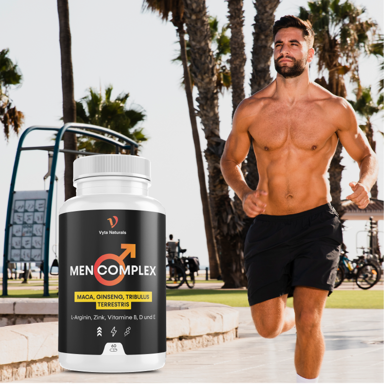 Möchtest du dich energiegeladener fühlen und bessere Leistungen bringen – im Fitnessstudio und darüber hinaus? Vyta Naturals Men Complex ist für Männer entwickelt, die ihre Energie hoch und ihre Leistung stark halten wollen. Mit natürlichen Inhaltsstoffen wie Maca, Tribulus Terrestris, rotem Ginseng und L-Arginin gibt es dir den zusätzlichen Schub, um harte Workouts zu meistern und dein Selbstvertrauen in den Momenten, die am meisten zählen, zu bewahren – ob du im Fitnessstudio alles gibst oder dich bei deinem Partner von deiner besten Seite zeigst. Diese Formel unterstützt auch normale Testosteronspiegel, was dir hilft, deine Kraft, Ausdauer und Vitalität zu erhalten.